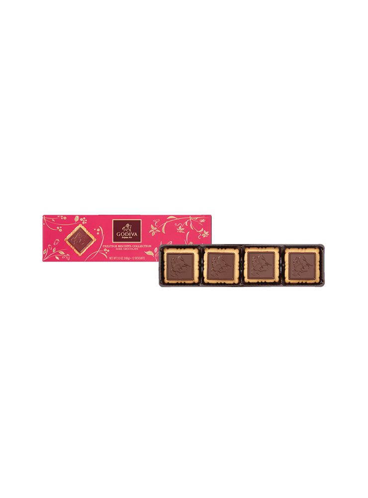 A traditional European biscuit topped with a square of smooth dark chocolate that is signature-imprinted with the legendary Lady Godiva. The perfect balance of biscuit and chocolate. Enjoy the crispier side of decadence.