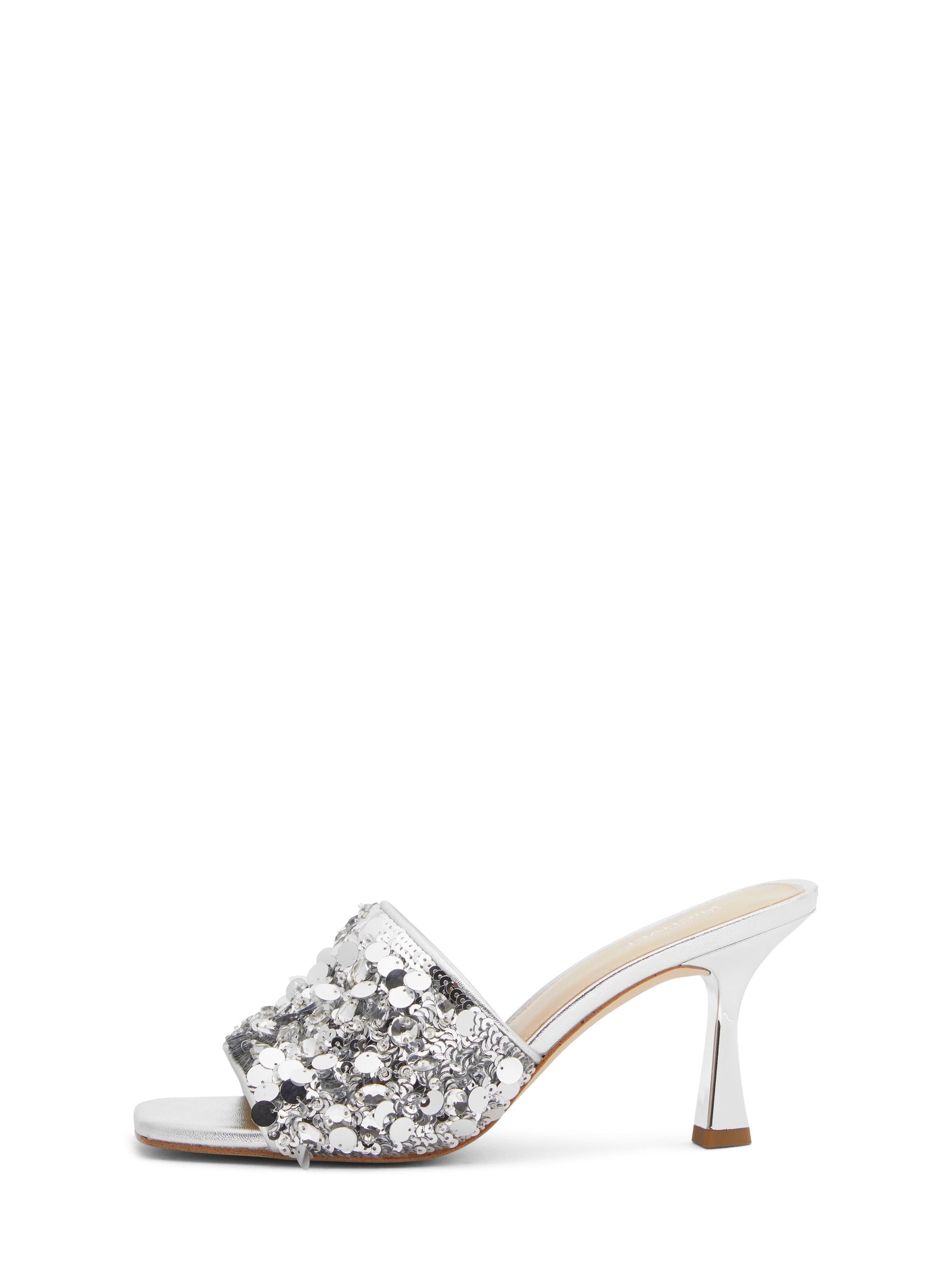 Designed with glamorous parties in mind, our limited-edition Tessa mules are hand-embellished with a sea of glittering sequins and crystals that reflect the light from every angle. The sculptural heels are etched with our Empire logo and add just the right amount of height. Slip them on with your favorite party dress for your next soirée.