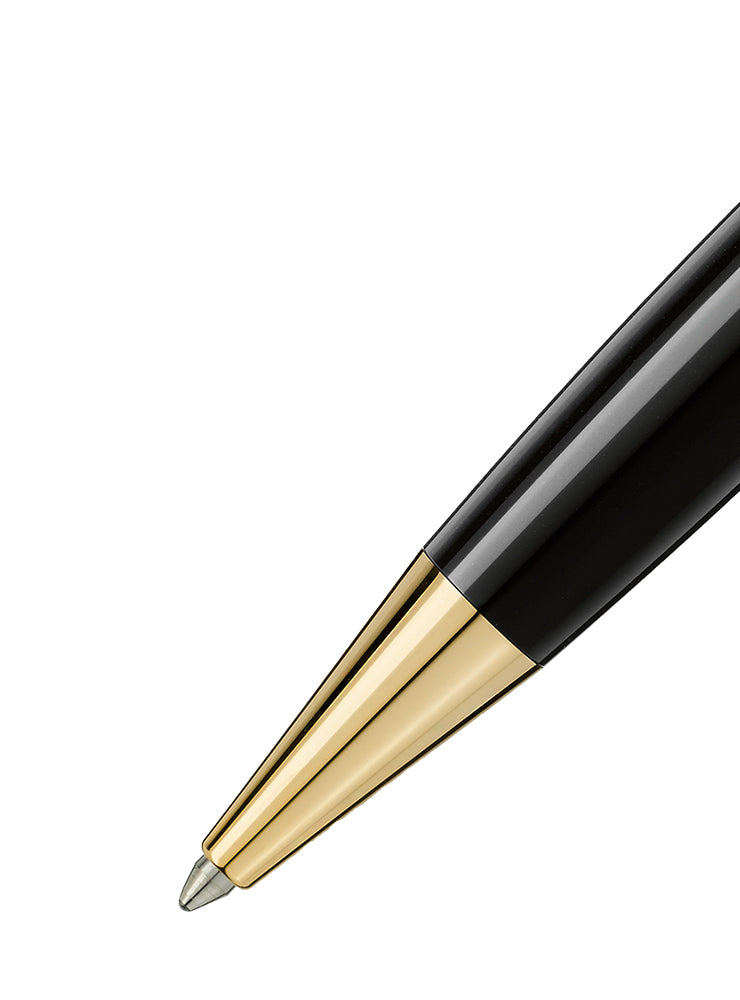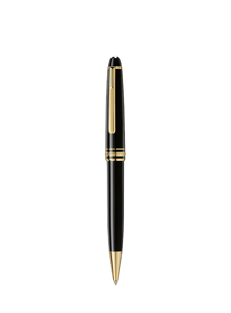 Montblanc Meisterstück LeGrand Gold-coated collection is a design that writes history. Introduced in 1924, a word meaning “Masterpiece,” the Meisterstück has become the symbol for high quality luxury writing. The cap and barrel are crafted in black precious resin featuring the iconic white Montblanc emblem inlaid in the cap top.