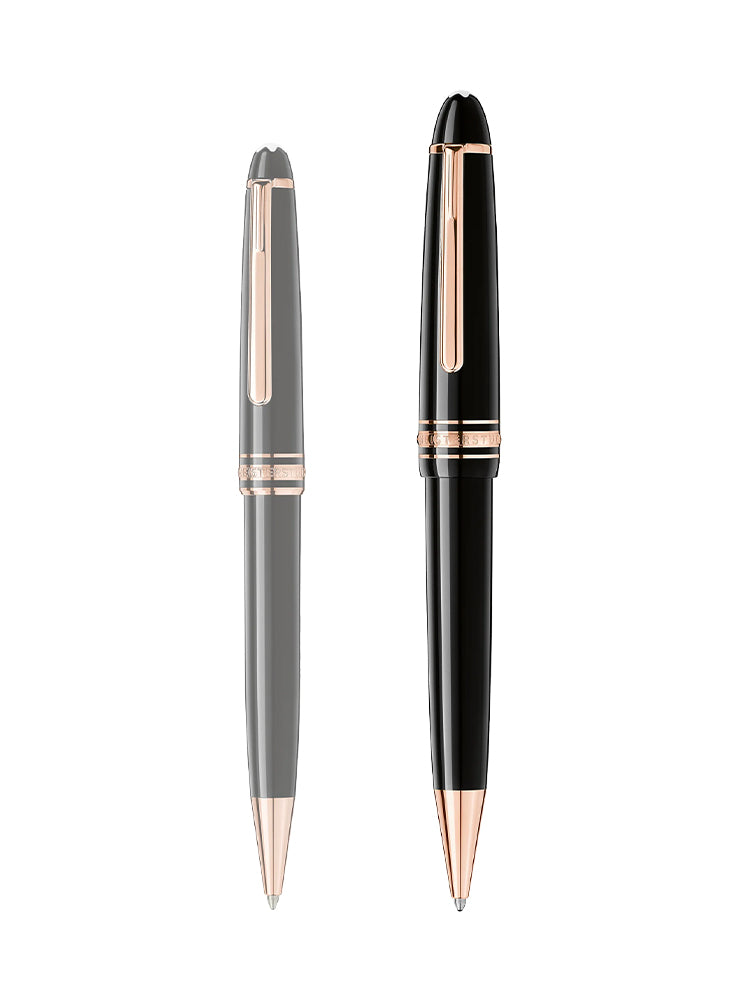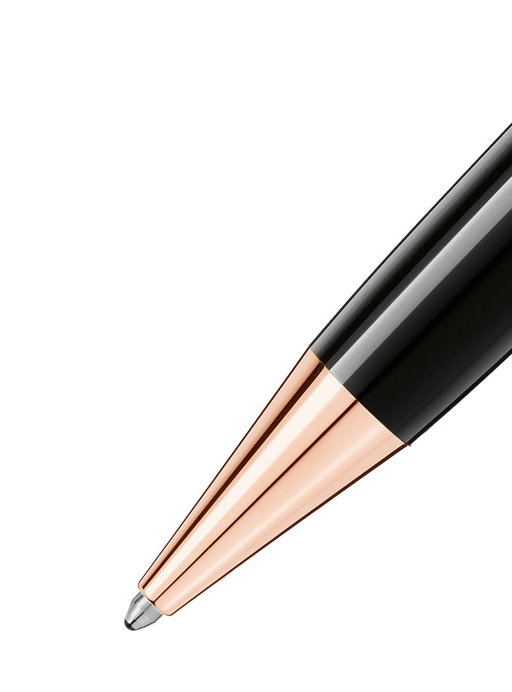 Montblanc Meisterstück LeGrand Rose-Gold-coated collection is a design that writes history. Introduced in 1924, a word meaning “Masterpiece,” the Meisterstück has become the symbol for high quality luxury writing. The cap and barrel are crafted in black precious resin featuring the iconic white Montblanc emblem inlaid in the cap top.